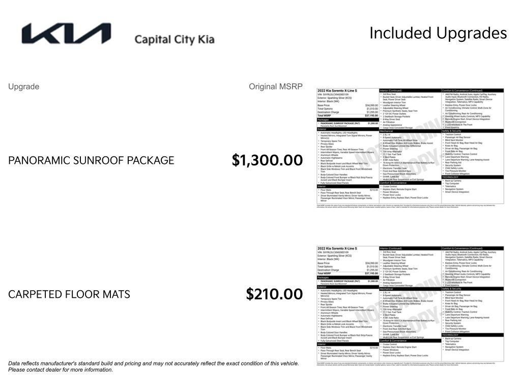 The 2022 Kia Sorento S delivers the perfect balance of style, versatility, and advanced technology in a midsize SUV designed for modern life. Its sleek, athletic exterior turns heads, while the spacious interior comfortably seats up to seven passengers with flexible seating solutions for all your gear. Under the hood, the efficient powertrain provides a smooth, confident ride, whether youâre commuting, road-tripping, or tackling weekend adventures. Inside, youâll enjoy premium features like a large touchscreen display, Apple CarPlay, Android Auto, and advanced driver-assist technology for added peace of mind.