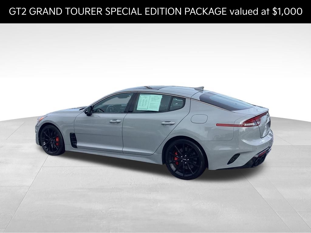 The Stinger GT2's sleek and sophisticated exterior, highlighted by the Ceramic Silver paint and distinctive black accents, commands attention wherever it goes. Step inside and you'll be enveloped in a cabin that exudes refinement, with premium materials and thoughtful design elements that cater to your every need.