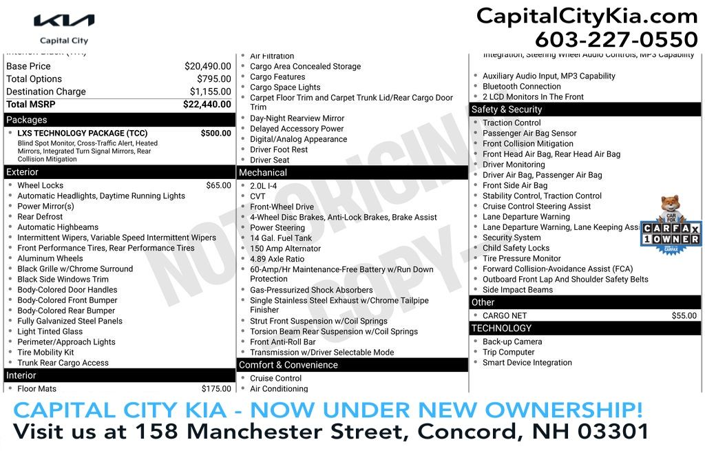 Buying a Kia in Concord is now Fast, Fair & Simple. Our commitment to transforming your car-buying experience starts today. We understand that some of you may have encountered challenges in the past, and our primary focus is to turn those experiences around and exceed your expectations. Since 1967, the Rosenberg family has been proud to serve New England car buyers. By emphasizing "family values" in every aspect of the car-buying process, we strive for honest price transparency and unparalleled customer care. Throughout the years, our reputation has been built on prioritizing you above all else. This isn't a marketing slogan; it defines our identity and has been the cornerstone of our business. At Capital City Kia, we believe in being active in our community to help foster trust, and continuously improve based on your feedback. Our mission is to earn your business each and every day and demonstrate the true essence of Rosenberg family values. Thank you for your time and continued support. If you have any questions or if there's anything we can assist you with, please don't hesitate to reach out. We look forward to serving you and exceeding your expectations here at Capital City Kia. Odometer is 12569 miles below market average! 28/39 City/Highway MPG