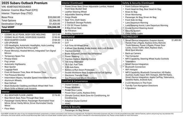 Whether you're embarking on a family road trip, tackling the great outdoors, or navigating the daily commute, the 2025 Subaru Outback Premium is the perfect companion. Experience the perfect blend of capability, comfort, and technology that sets this exceptional SUV apart.