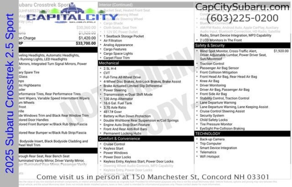 This is an excellent vehicle at an affordable price! Top features include front fog lights, front dual-zone air conditioning, lane departure warning, and power windows. Smooth gearshifts are achieved thanks to the 2.5 liter 4 cylinder engine, and for added security, dynamic Stability Control supplements the drivetrain.
