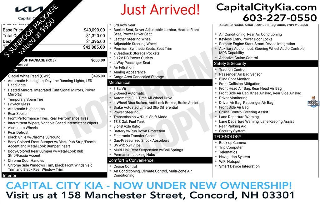 Exterior Color: Glacial White Pearl, Interior Color: Black, VIN: 5XYP6DGC3RG497038,Stock #: 711260A, Transmission: 8-Speed Automatic, Location: Capital City Kia, Engine: 3.8L V6 DOHC, Mileage: 13,312 miles miles