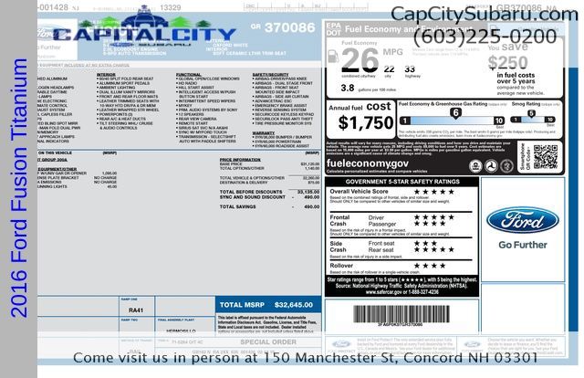 Exterior Color: Oxford White, Interior Color: Medium Soft Ceramic, VIN: 3FA6P0K97GR370086,Stock #: CSP1446A, Transmission: 6-Speed Automatic, Location: Capital City Subaru, Engine: 2L EcoBoost I4 GTDi DOHC Turbocharged VCT, Mileage: 120,909 miles miles