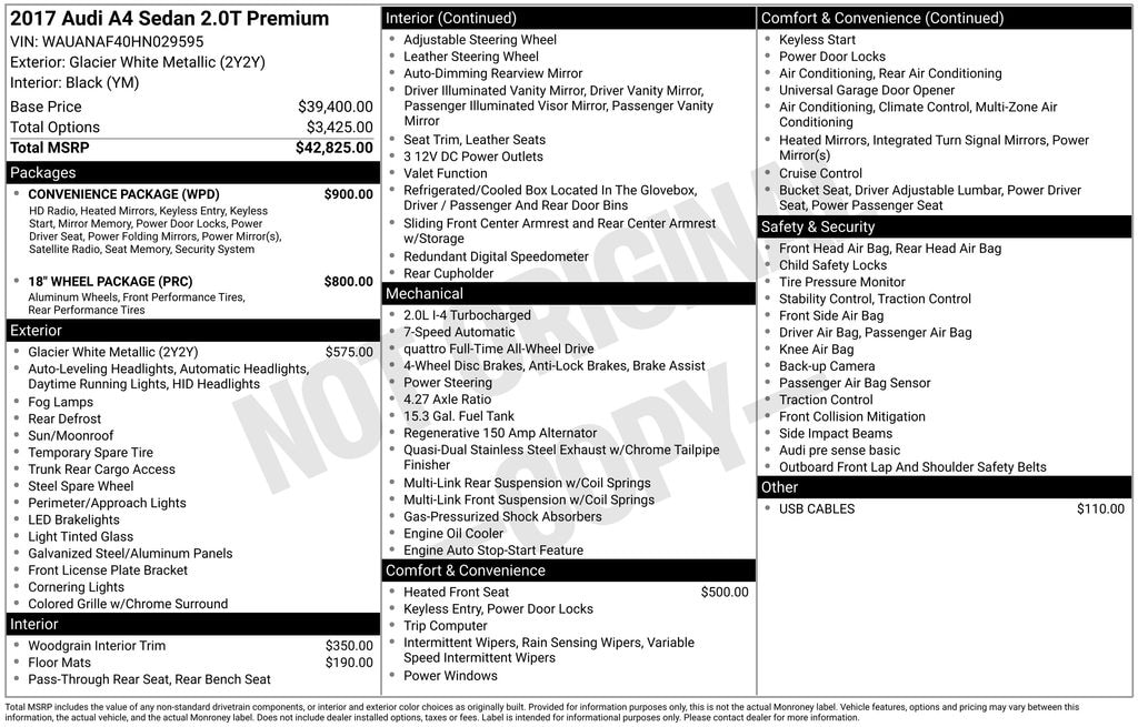 Let me start by saying, overall the A4 is an enjoyable car to drive. and I've been happy with its performance, etc. That Said HOWEVER... ...my 2017 Audi A4 Premium Plus car is garaged, and ALL dealer services done on time and documented. Less than 36,000 and I got a transmission light that it's drivable but that it should be serviced when possible. I noticed a very slight shudder, or slip on a couple occasions, mainly when lightly accelerating into turns, but that's it. A trip to the dealer service dept., netted me a bill of almost FIVE-THOUSAND dollars for a transmission repair. They had the nerve to offer me a trade in for a new one. REALLY? ...my A4 has LESS than 36,000 miles on it, and I have a broken Transmission? With ZERO help from Audi or the Dealer, Um, Never, ...Never will I own an Audi again. Next car? May as well buy a Hyundai, with an included 10 year 100,000 mile warranty...… - 5.0