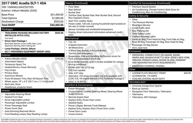2017 GMC Acadia SLT-1 Iridium Metallic AWD 6-Speed Automatic 3.6L V6 SIDI DOHC VVT