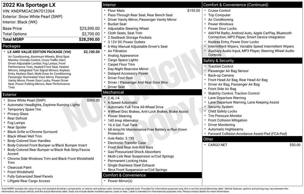 I bought my Sportage S in August and I am happy I did. For a compact SUV it is very comfortable and the cabin is laid out nicely. The ride is great! The only drawback is gas mileage is a little below average, but I can live with it.… - 5.0