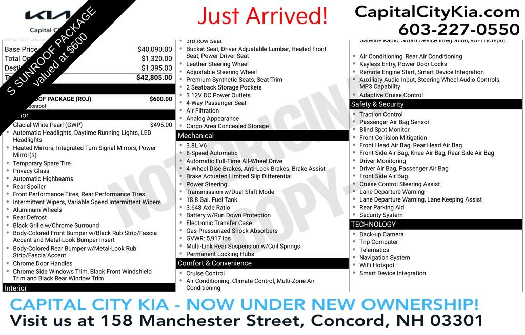 The safety you need and the features you want at a great price! With fewer than 15,000 miles on the odometer, this 4 door sport utility vehicle prioritizes comfort, safety and convenience. Kia prioritized practicality, efficiency, and style by including: voice activated navigation, power door mirrors and heated door mirrors, and more. Smooth gearshifts are achieved thanks to the refined 6 cylinder engine, and for added security, dynamic Stability Control supplements the drivetrain.