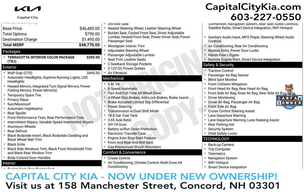 This is an exceptional vehicle at an affordable price! With fewer than 15,000 miles on the odometer, this 4 door sport utility vehicle prioritizes comfort, safety and convenience. Kia prioritized practicality, efficiency, and style by including: voice activated navigation, a power liftgate, and leather upholstery. Under the hood you'll find a 6 cylinder engine with more than 270 horsepower, and load leveling rear suspension maintains a comfortable ride.