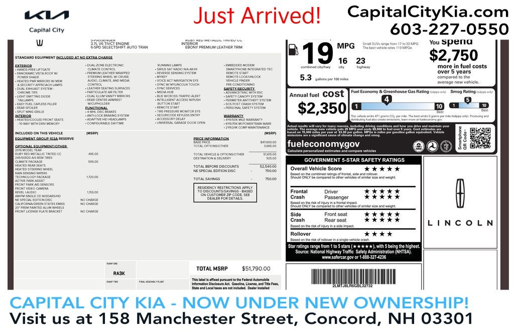 Rendered with stunning clarity and bold sophistication! All of the premium features expected of a Lincoln are offered, including: high intensity discharge headlights, blind spot sensor, and remote keyless entry. It features an automatic transmission, all-wheel drive, and a refined 6 cylinder engine.