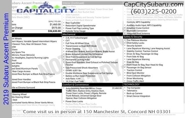 We're confident that this 2019 Subaru Ascent Premium will exceed your expectations. Experience the perfect balance of capability, comfort, and technology that this exceptional SUV has to offer.