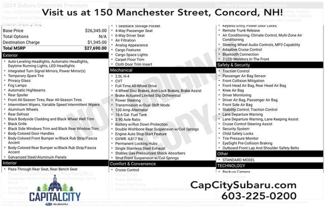 This vehicle stands out from the crowd, boasting a diverse range of features and remarkable value! Subaru infused the interior with top shelf amenities, such as: turn signal indicator mirrors, lane departure warning, and a split folding rear seat. Under the hood you'll find a 4 cylinder engine with more than 150 horsepower, and for added security, dynamic Stability Control supplements the drivetrain.