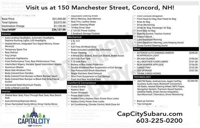 2024 Subaru Legacy Limited Ice Silver Metallic AWD Lineartronic CVT 2.5L 4-Cylinder DOHC 16V
