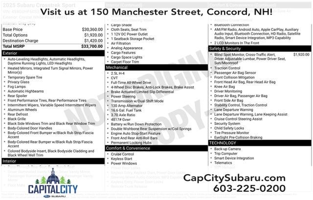 It just arrived on our lot this past week! With fewer than a thousand miles on the odometer, this 4 door sport utility vehicle prioritizes comfort, safety and convenience. All of the premium features expected of a Subaru are offered, including: power windows, rear wipers, and 1-touch window functionality. Smooth gearshifts are achieved thanks to the 2.5 liter 4 cylinder engine, and for added security, dynamic Stability Control supplements the drivetrain.